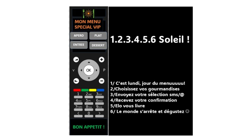 Chaque semaine de bonne heure (et de bonne humeur) le lundi, vous recevrez un p’tit message de ma part ou visible sur le présent site, vous donnant les festivités culinaires de la semaine. Pour le moment, de façon privilégiée, et seulement aux spéciales VIP j’ai cité vous-même bien sûr !