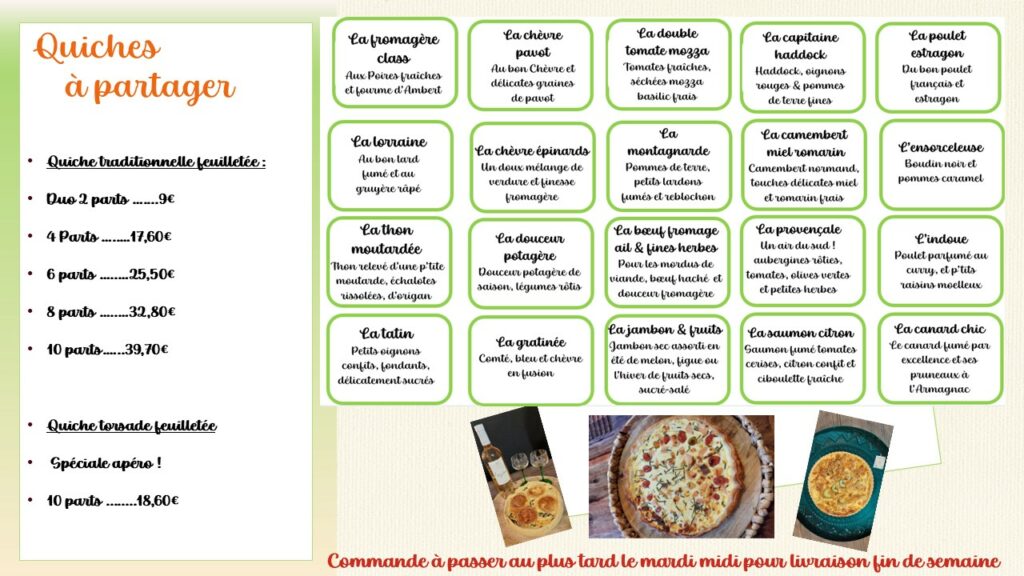Accueil Non classé Arrivée des quiches à partager !