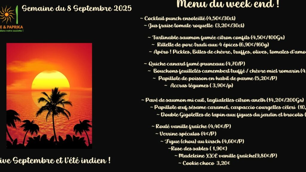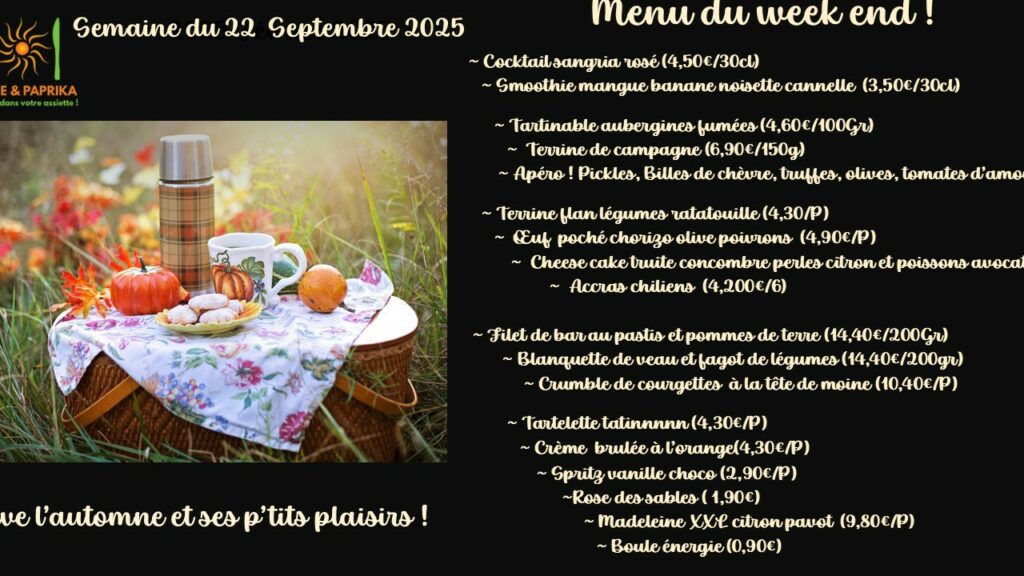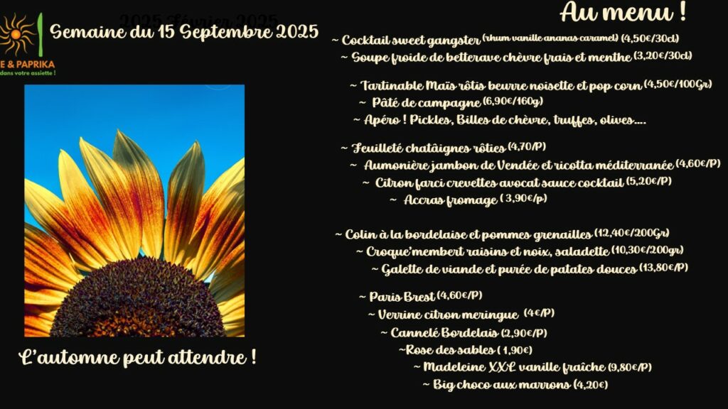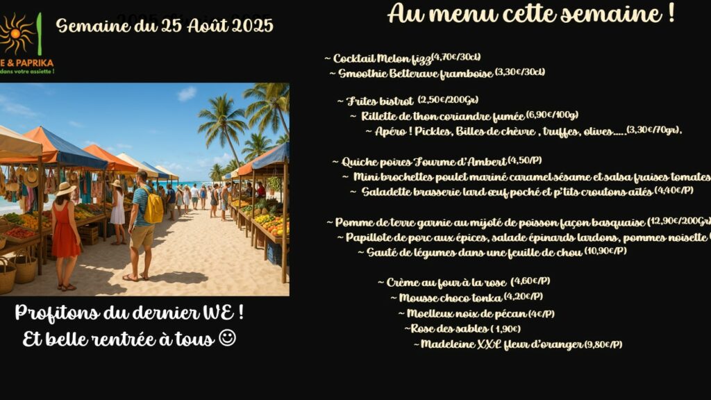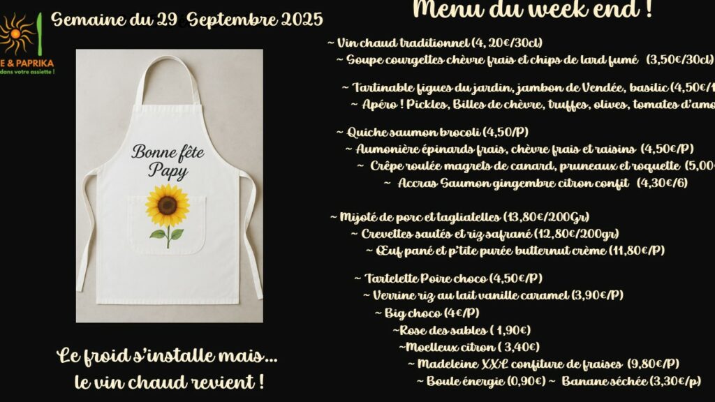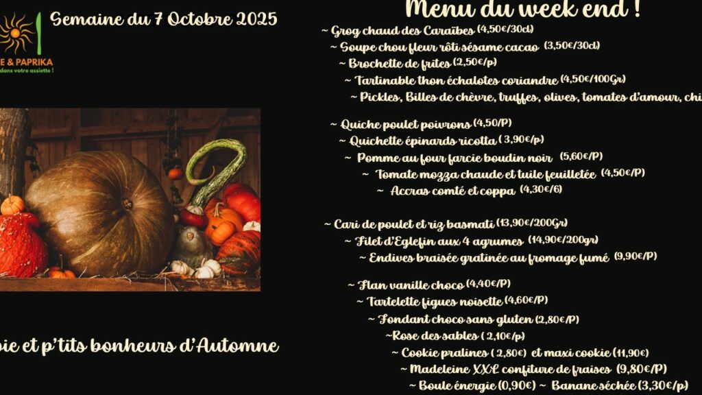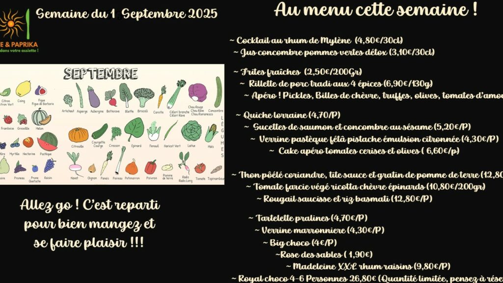 Voici le menu proposé au marché de la gare, n’hésitez pas à me faire part de vos envies culinaires :::))))